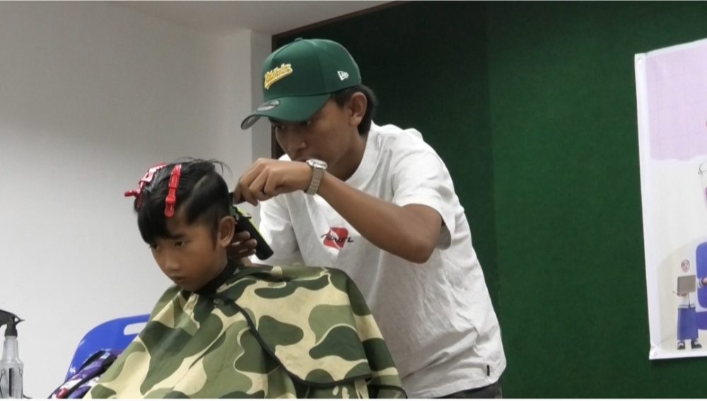 GUNTING RAMBUT… Program Kembali Ke Sekolah TBS turut diadakan mengunting rambut percuma kepada anak-anak asnaf yang akan ke sekolah minggu depan.